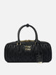 Miu Miu "Arcadie" handbag made with lightweight padding and semi-rigid structure. The leather construction highlights a compact silhouette with defined volume. The handles and removable shoulder strap allow for different modes of use, while the top closure is entrusted to a zipper. On the front, the painted metal lettering logo is integrated into the surface. The interior is lined with cotton satin and features an interior zippered pocket.
