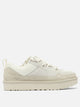 Ugg's "Lo Lowmel" sneaker features an upper composed of genuine suede and recycled woven canvas mesh, defining a low-cut silhouette with textured elements. The construction integrates a durable fabric heel strap and an oversized padded tongue. The closure system uses two-tone flat laces and double lacing. Lightweight construction is provided by the sugarcane EVA outsole, complemented by polyester mesh lining.