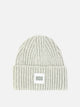 Coarse knit Ugg ribbed beanie made from a blend fabric combining acrylic, nylon and wool. The unlined construction lends lightness and breathability to the garment. The profile is linear and fitted, the silhouette follows the shape of the head without volumetric excess. The leather logo application is placed on the front as a distinctive element of the product.
