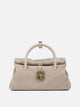 Zanellato "Dotta Jones" handbag made of suede and grained leather features a structured construction and compact silhouette. The model features rigid handles, roll-top magnet closure, tubular twist-lock buckle straps and studded details along the profiles. The interior offers a zippered pocket and lined main compartment. Adjustable and removable shoulder strap via metal hooks.